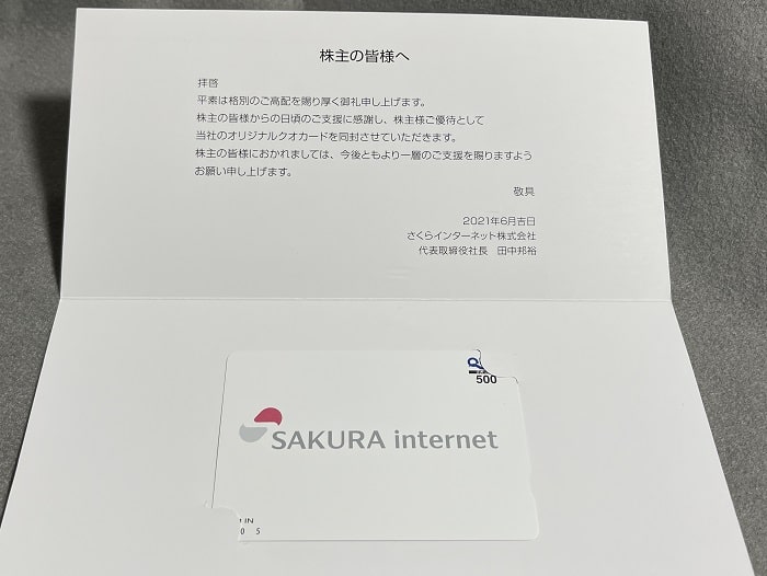 本日2021年6月24日(木)、さくらインターネットから2021年3月分の株主優待が届きました。